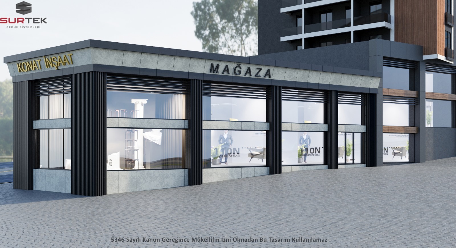 Cephe sistemi içerisinde yatayda ve düşeyde çeşitli genişliklerde kullanılabilinen alüminyum kapak profili, mimarların taleplerine göre pek çok farklı geometrik